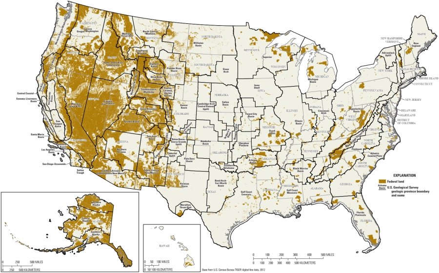 USGS, 2025. Schenk, C.J., Mercier, T.J., and the 1995–2025 National and Global Oil and Gas Assessment Project Federal Lands Resource Allocation Team, 2025, An estimate of undiscovered, technically recoverable oil and gas resources underlying Federal lands of the onshore United States, 2025: U.S. Geological Survey Fact Sheet 2025–3032, 6 p., doi.org/10.3133/fs20253032